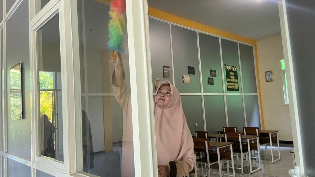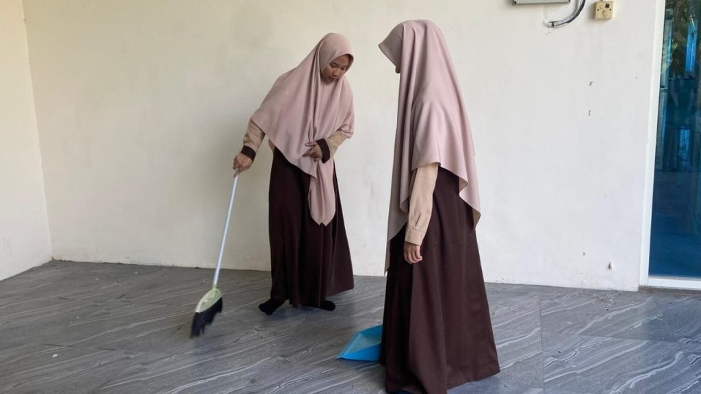 Kegiatan membersihkan lingkungan yang dilakukan para santri menjadi salah satu bentuk nyata pengamalan ajaran Islam yang menekankan pentingnya menjaga kebersihan sebagai bagian dari iman. Dalam aktivitas sehari-hari di lingkungan pesantren, para santri dibiasakan untuk menjaga kebersihan area belajar, asrama, serta fasilitas umum sebagai bentuk tanggung jawab bersama terhadap kelestarian lingkungan.